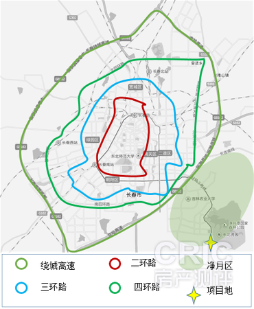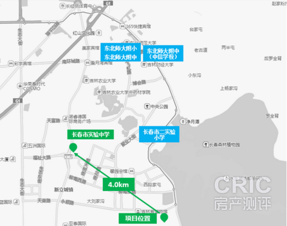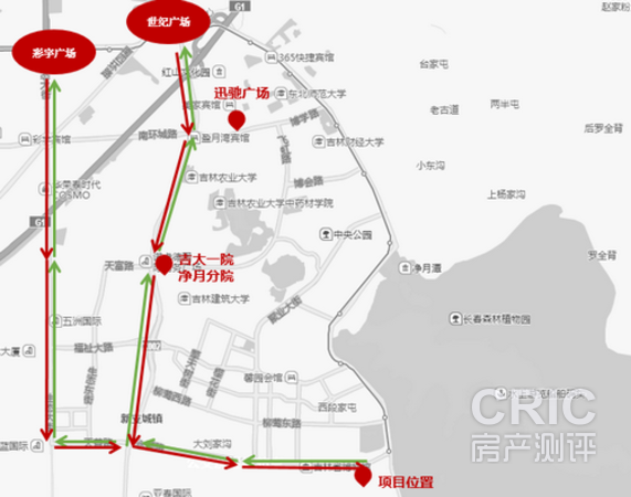 项目位于净月区长影世纪城对面,紧挨着净月潭国家森林公园。但是项目距离公园的主入口较远,需要乘坐位于项目东北角的轻轨三号线四站地到达净月潭国家森林公园。另外,小区东侧的净月山余脉也可以作为小区业主的一个休闲,爬山的好地方。但是开发状况没有公园内的好,建议老年人如果想要徒步的话还是前往净月潭还是比较不错的。但是现阶段周边开发热度不高,配套并不完善,人员导入的速度较慢。未来形成一个成熟的居住中心的时间还是需要很长。项目在二期规划有中小学九年连读学校并且已经开学。